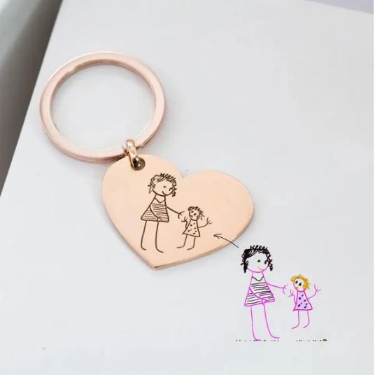 Unlock the love and memories with our heart-shaped keychain. Customize it with your child's imaginative artwork or a heartfelt handwritten message from someone you love. Every time you reach for your keys, you'll hold a piece of your heart in your hand.